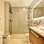 تتمتع الشرفة هنا بإطلالات على البحر. تشتمل مرافق الحمام أيضًا على شطافة بيديه والدوش المنفصل والمرحاض المنفصل. يتم تضمين مجفف الشعر وملاءات الحمام والمناشف لمزيد من الراحة.